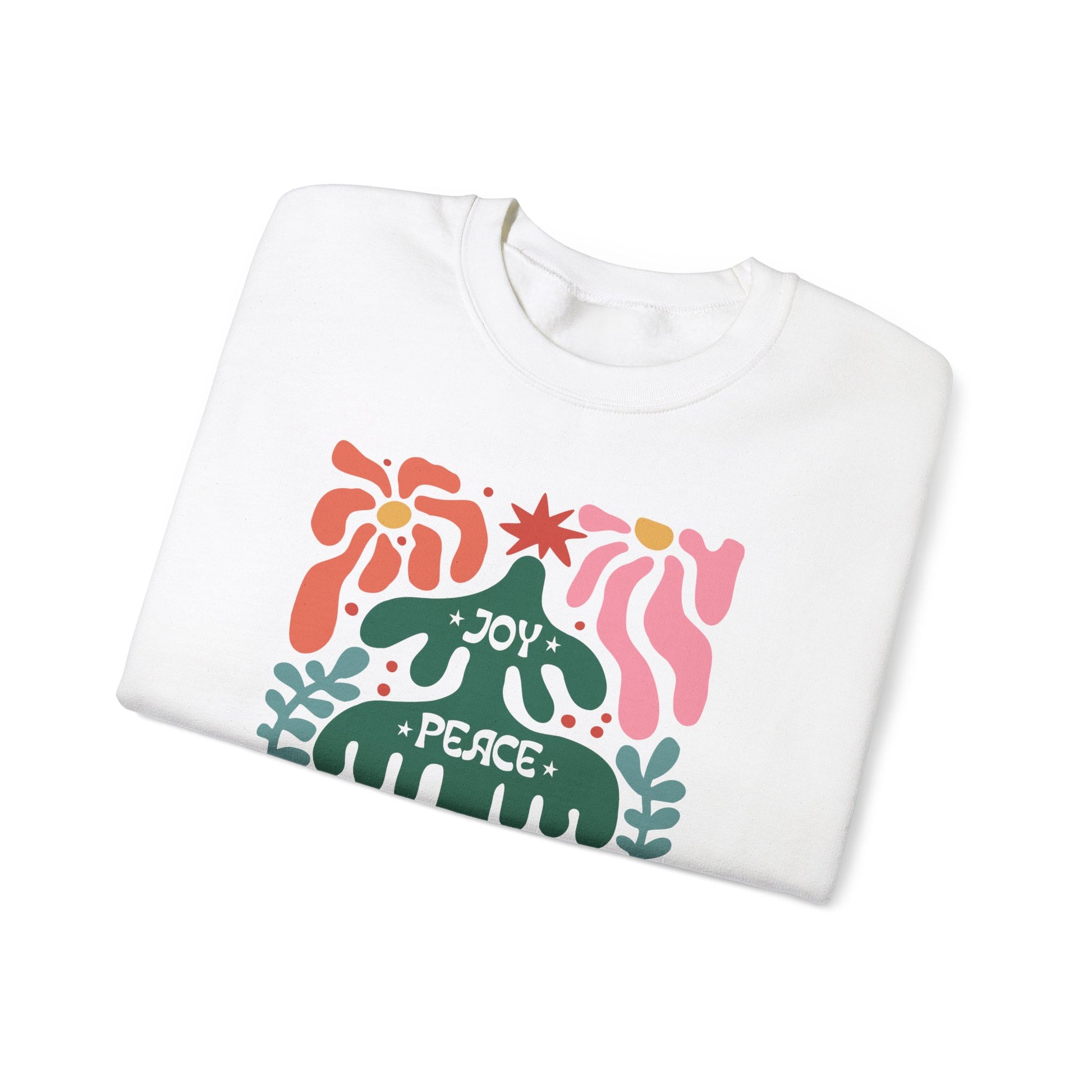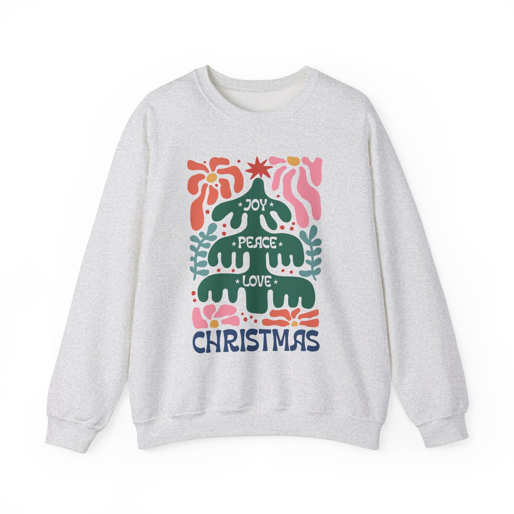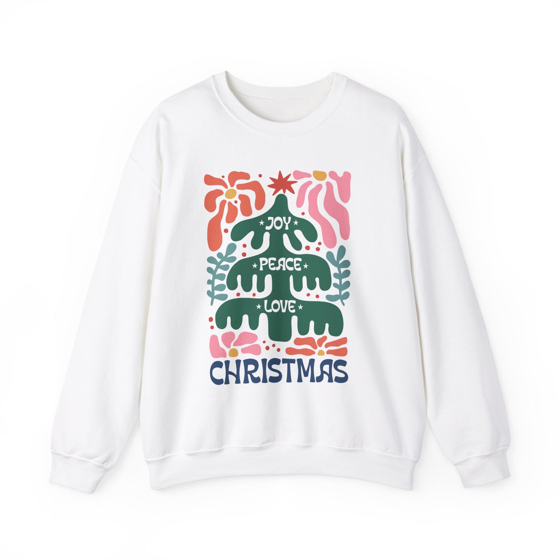 Boho Christmas Crewneck Sweatshirt - Joy, Peace, Love - Merry Christmas Style
