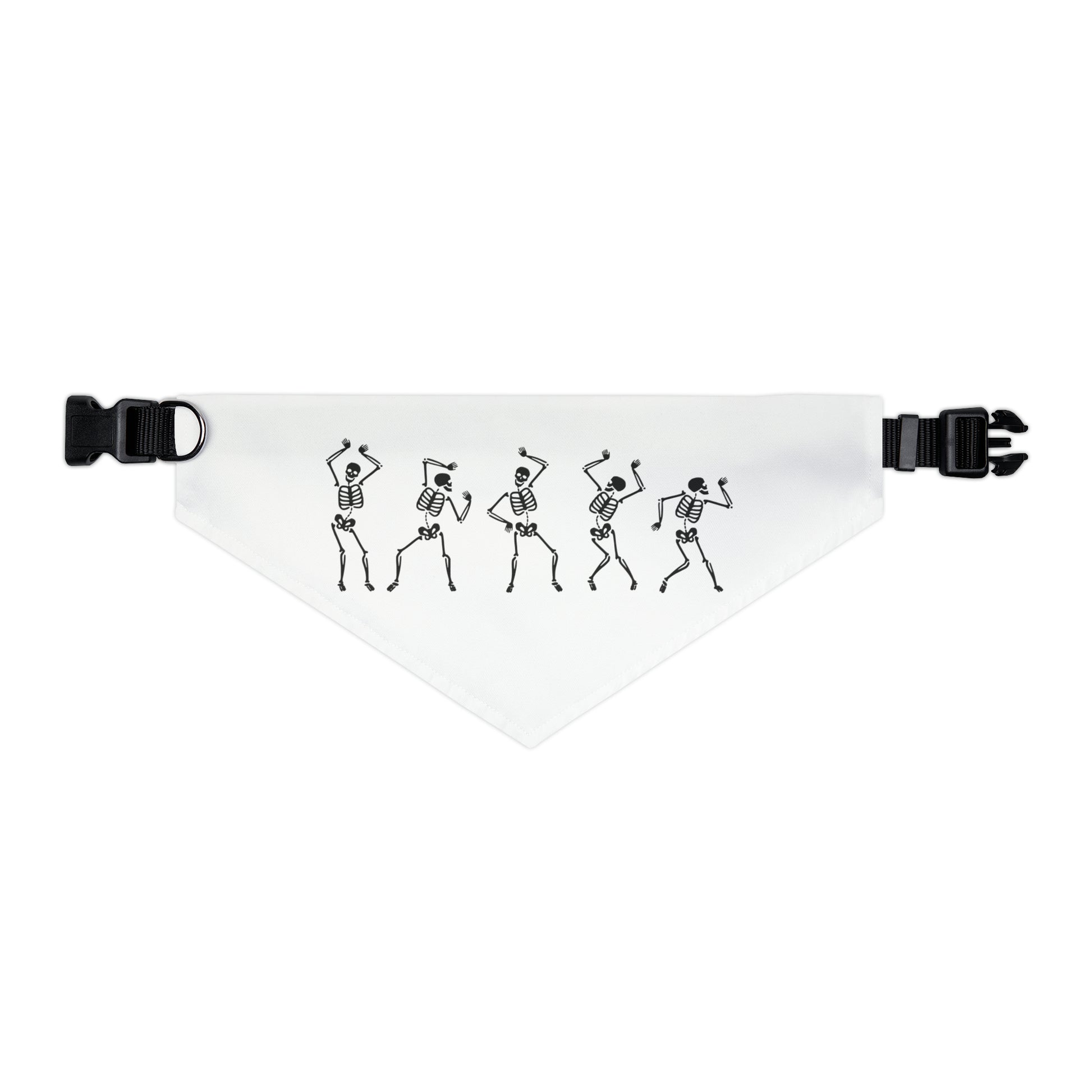 Unleash your pet's spooky spirit with our "Bone Groove" Pet Bandana Collar. Part of our Dancing Skeletons Family Matching Collection, this polyester duck fabric bandana offers durability while showcasing a lively dancing skeletons design. Ensuring a proper fit, the adjustable black collar with a plastic buckle keeps the bandana in place, even during those playful moments. Whether it's for a Halloween party or a fun day out, let your furry friend join the family in style!