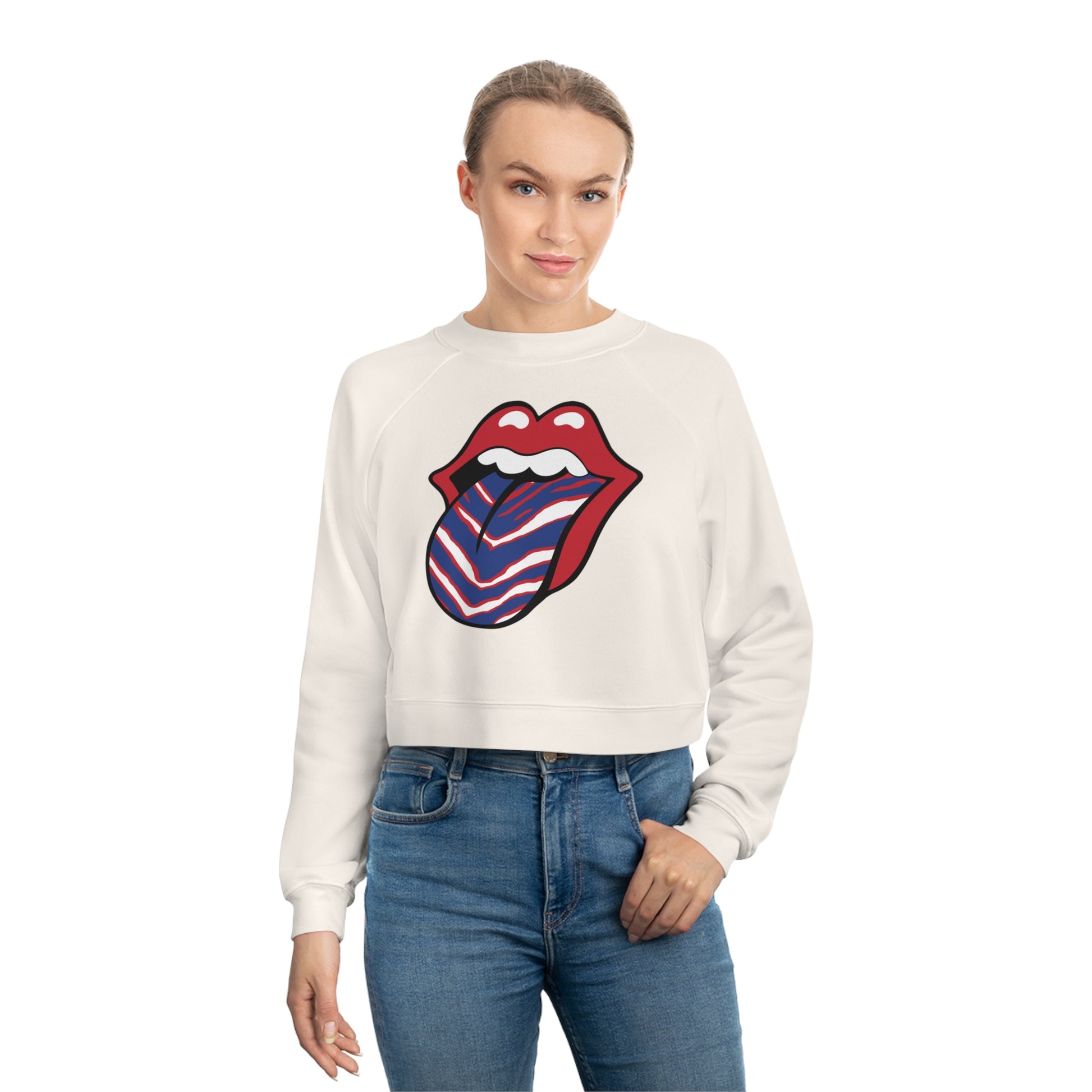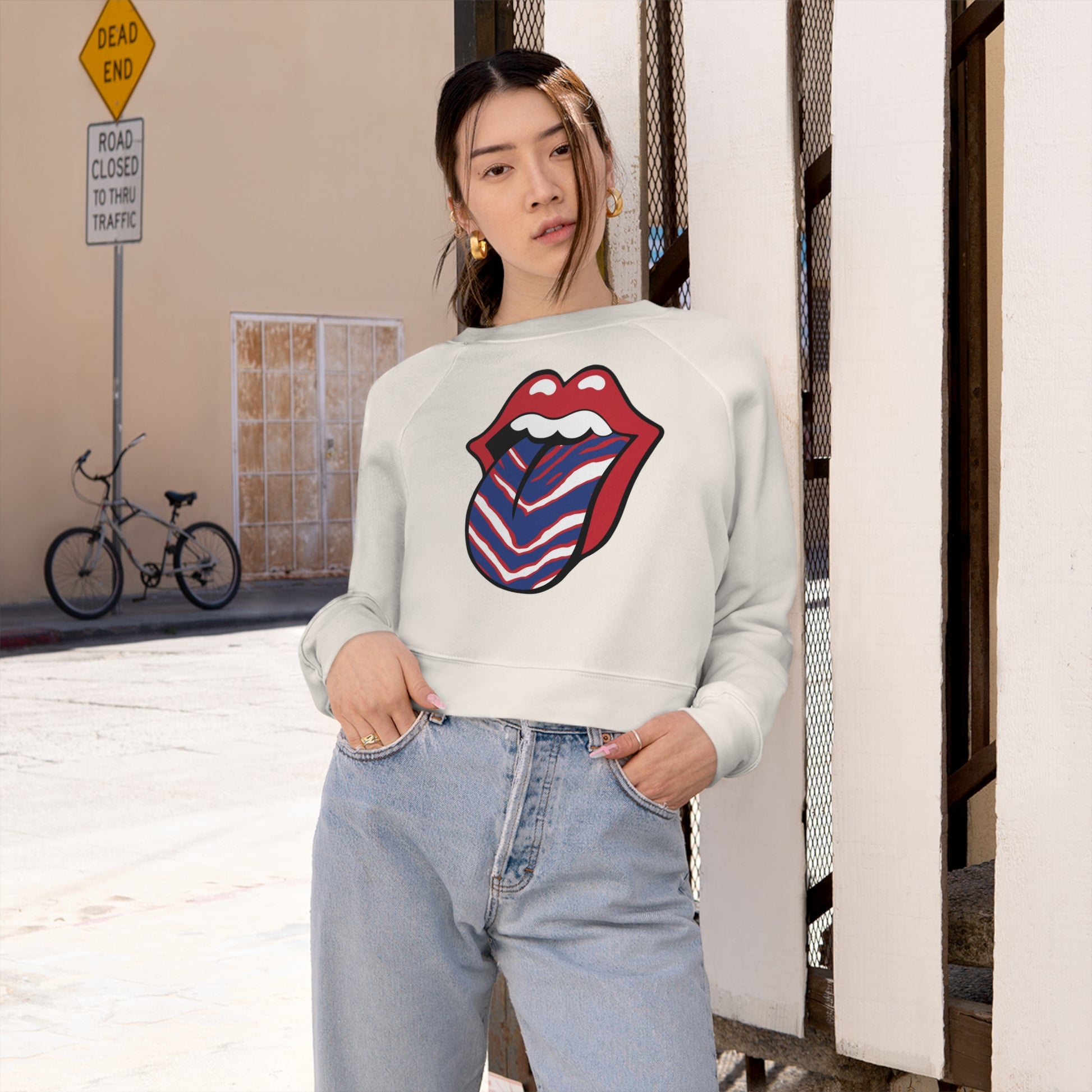 Show off your team spirit with the Buffalo Bills Mafia Stones Style Women's Cropped Fleece Pullover. Designed for the ultimate fan, this pullover is made from a luxurious blend of 52% Airlume ring-spun cotton and 48% polyester fleece, ensuring an ultra-soft feel that retains its shape. The raglan-cut and contoured seams give it a relaxed and fashionable fit, while the unique Rolling Stones tongue-themed design adds a rock'n'roll edge. It's a trendy way to celebrate your Buffalo pride, whether you're at the game or on the town.