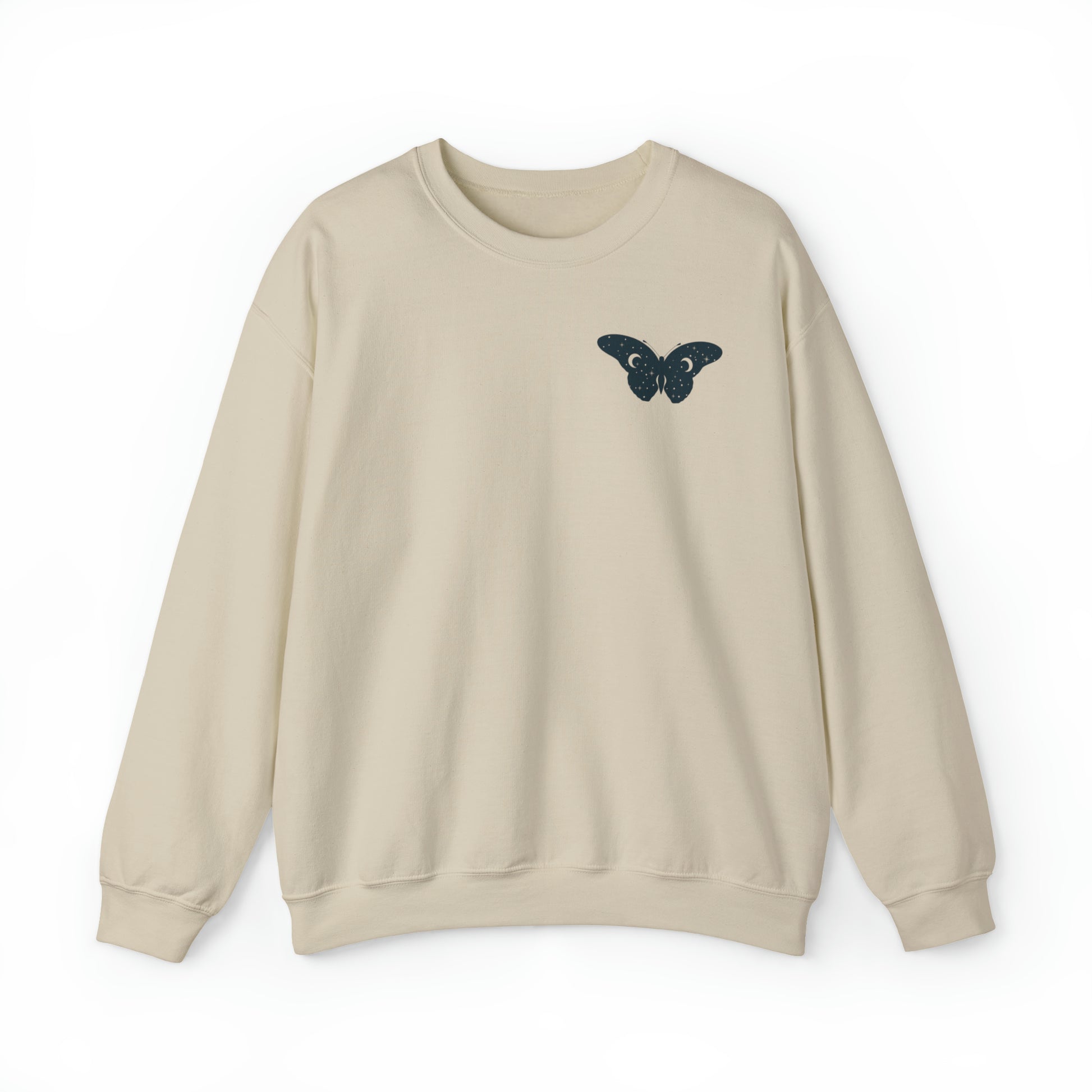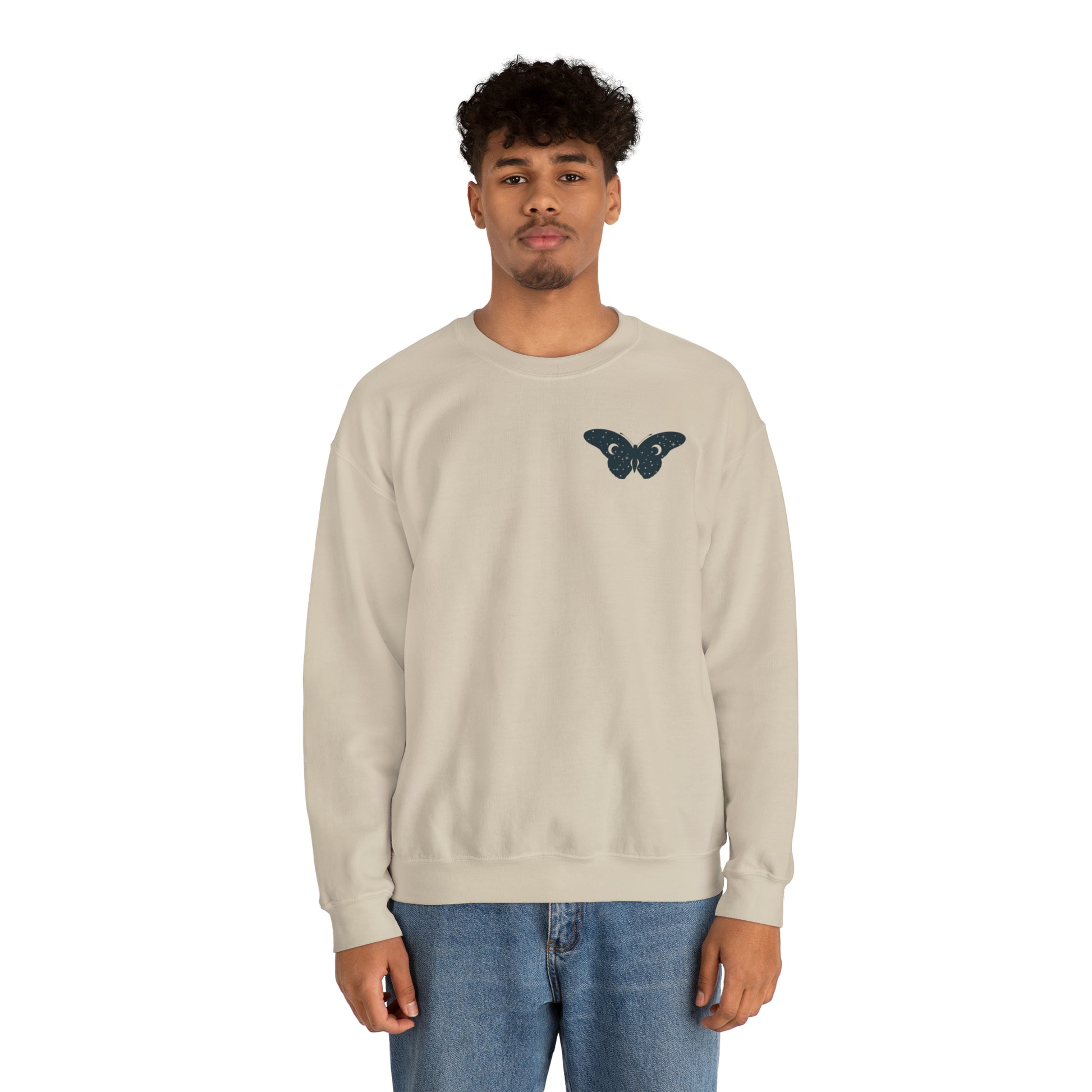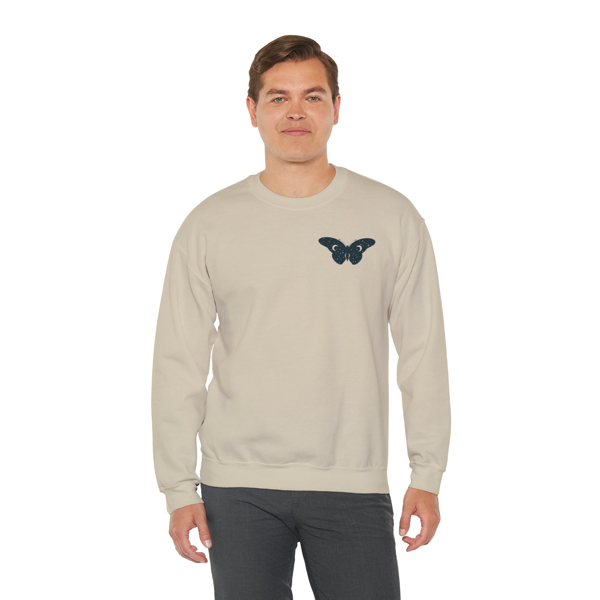 Embrace the mystical union of the moon and the butterfly in our "Lunar Butterfly" crewneck sweatshirt. Crafted for both men and women, this cotton-polyester blend provides the warmth and comfort for those chilly nights under the moonlight. The butterfly symbols, traditionally known for transformation, paired with the moon, a symbol of cycles and rhythm, create a unique piece that speaks to growth and evolution.