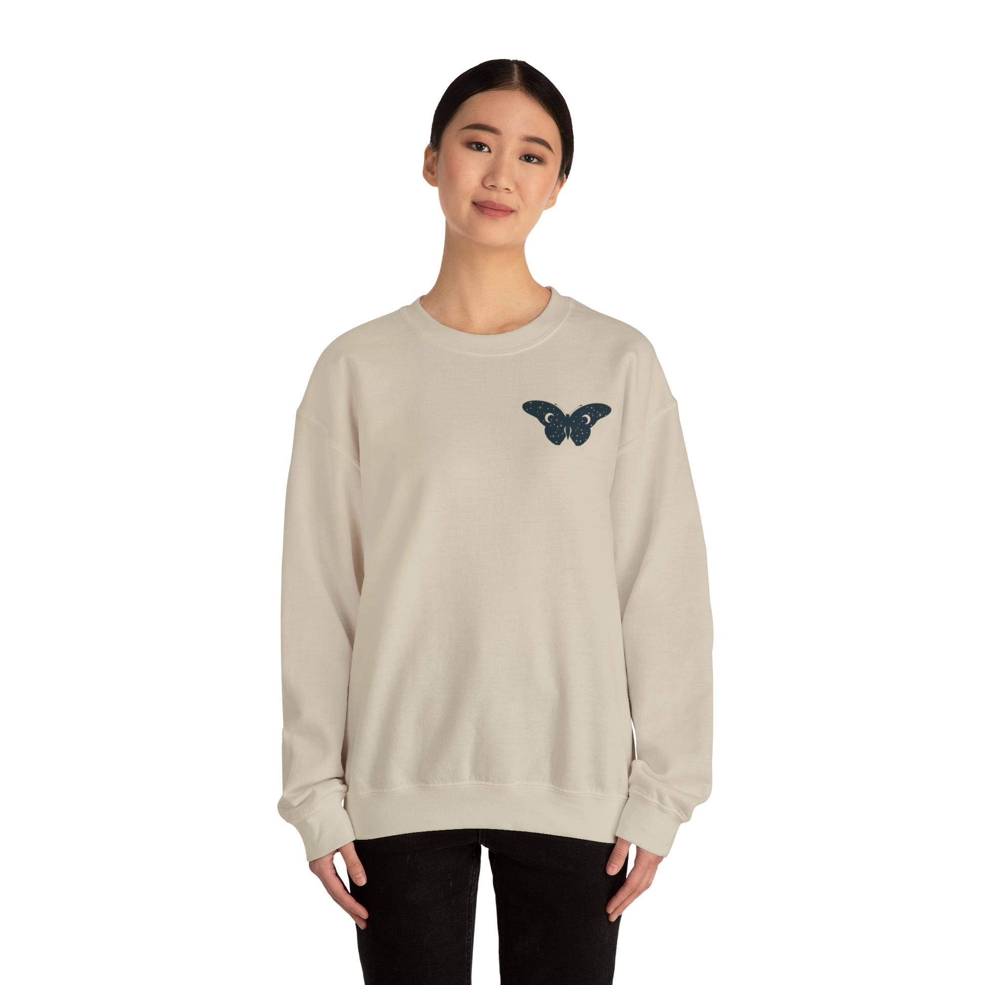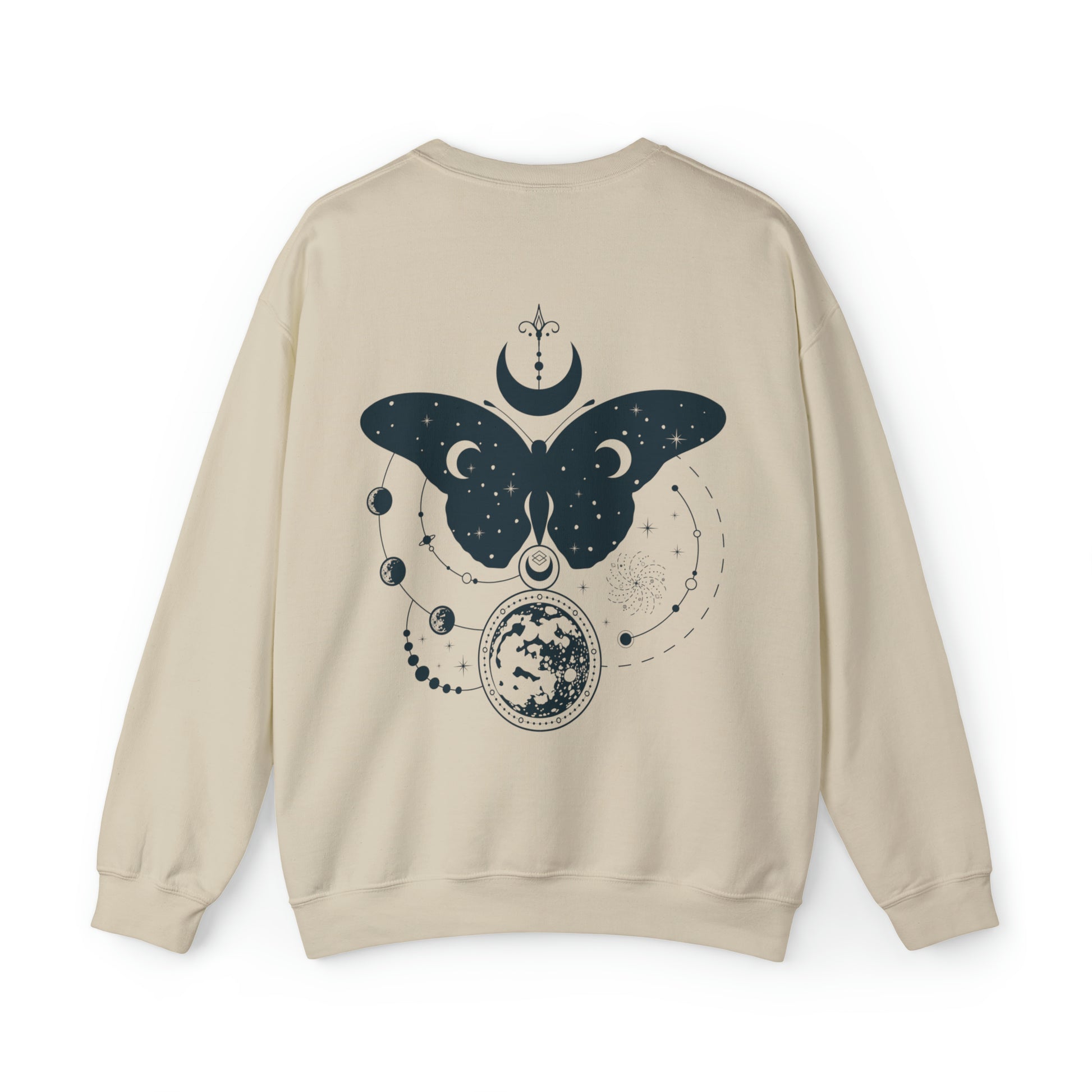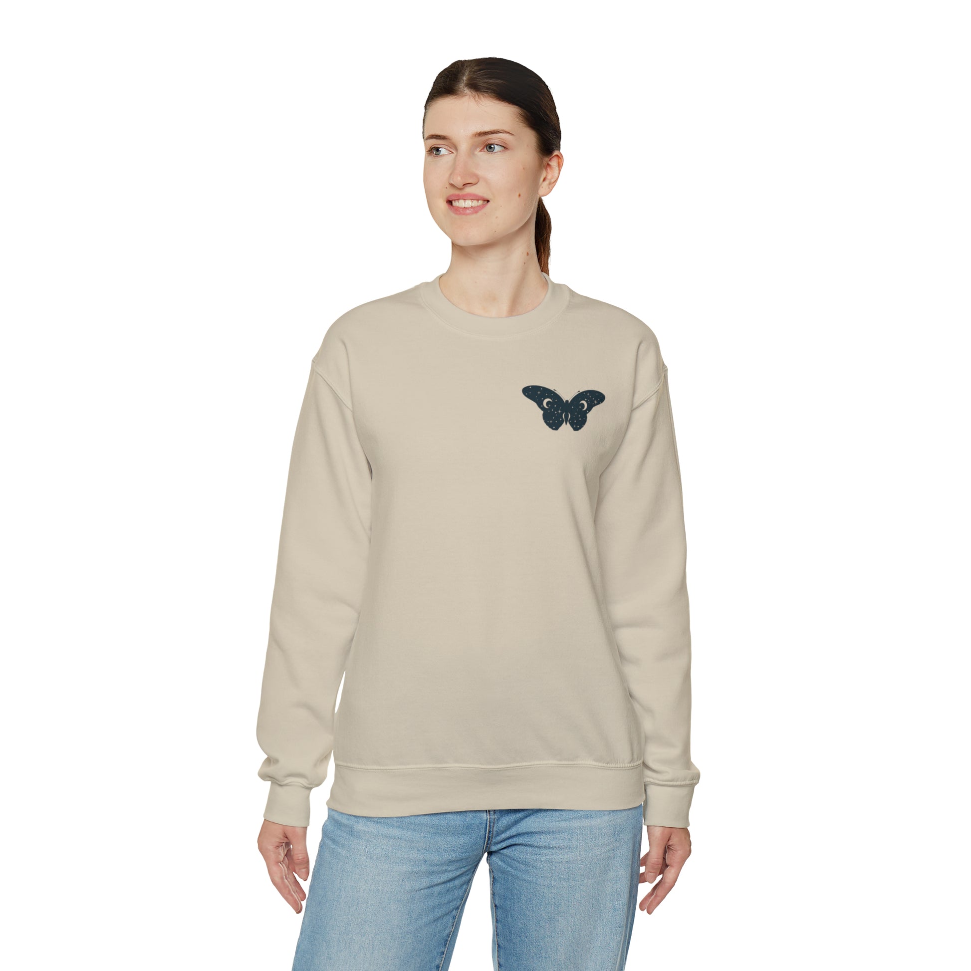 Embrace the mystical union of the moon and the butterfly in our "Lunar Butterfly" crewneck sweatshirt. Crafted for both men and women, this cotton-polyester blend provides the warmth and comfort for those chilly nights under the moonlight. The butterfly symbols, traditionally known for transformation, paired with the moon, a symbol of cycles and rhythm, create a unique piece that speaks to growth and evolution.