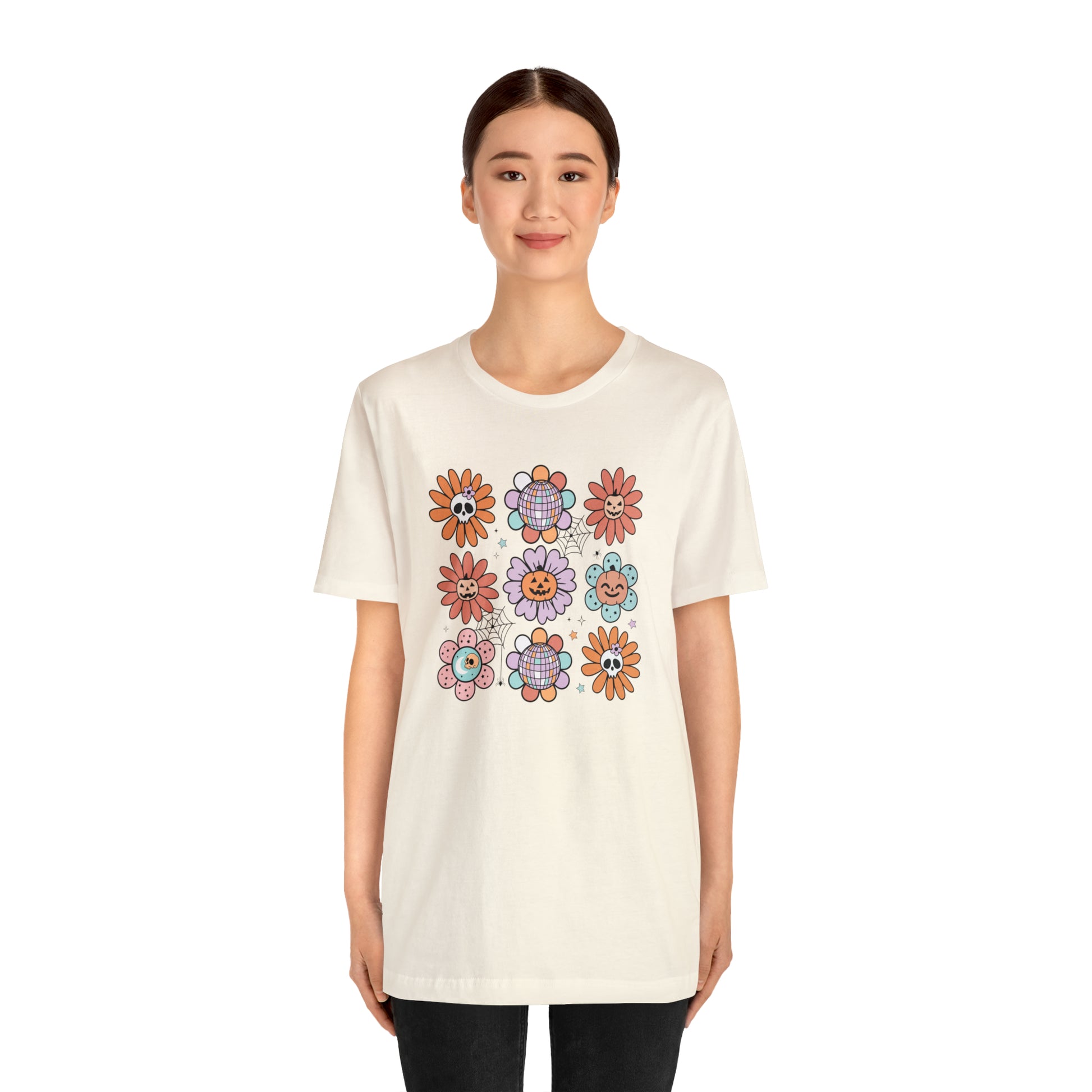 Embrace the spooky season with a touch of vintage flair. Our Retro Pumpkin Webbed Tee brings a harmonious blend of Halloween classics – the pumpkin, the spider web, and delicate autumn flowers. Crafted with soft cotton, this unisex tee promises not just a nostalgic visual treat, but also a comfortable fit that you'd want to wear every fall. Whether you're out for a pumpkin patch visit or a Halloween movie marathon at home, this tee has got you covered.